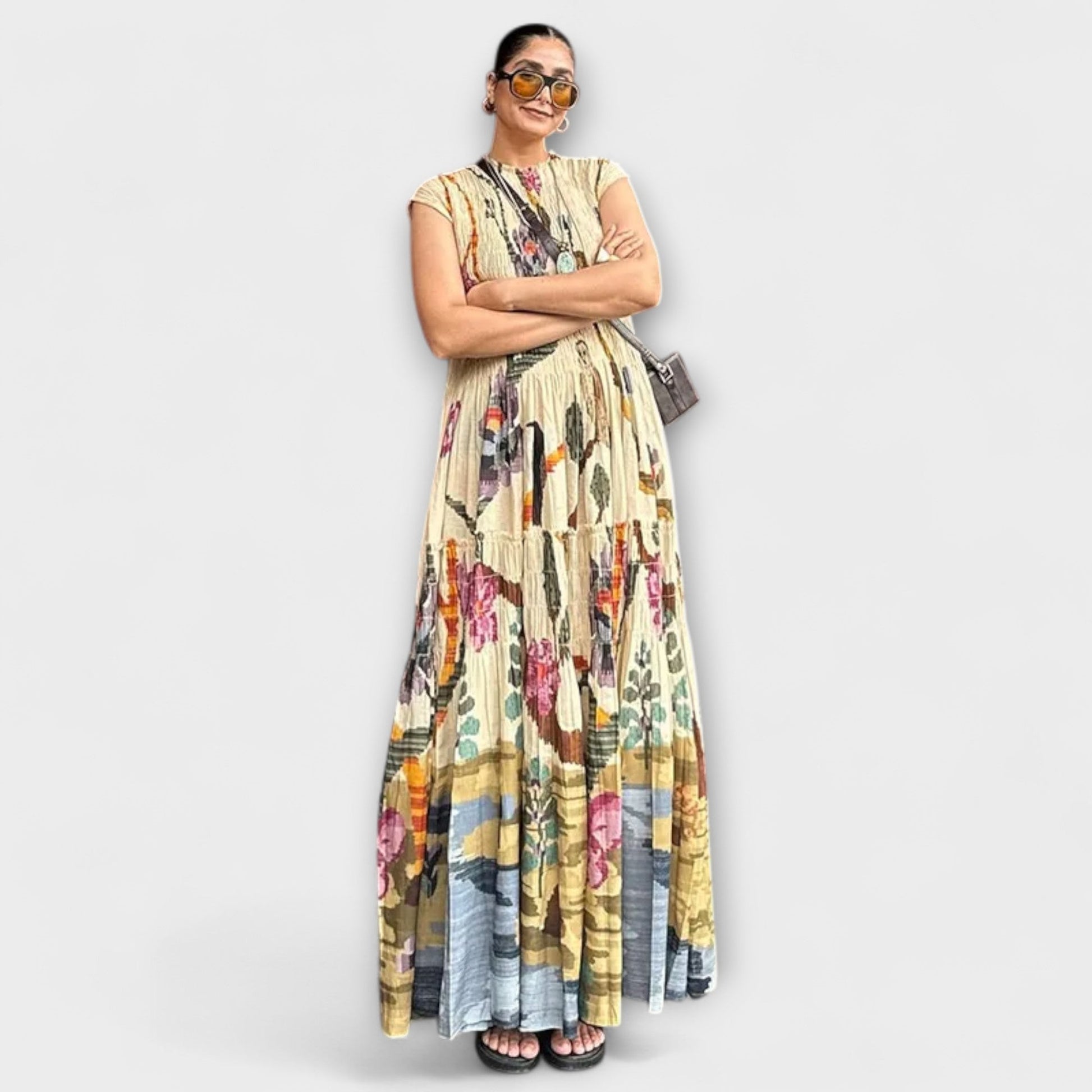 Abito Elegante Plissettato a Maniche Lunghe